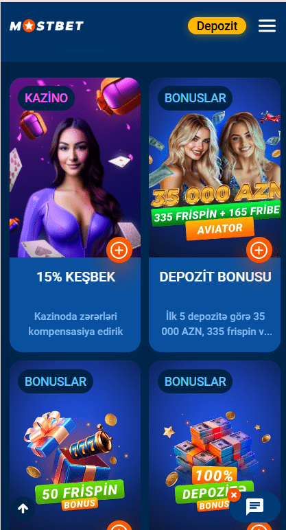 - İlk depozit bonusu: Yeni oyunçular 800 AZN ilk depozit bonusu alır, həmçinin əlavə olaraq depozit olmayan fırlatma və ya fribetlər hədiyyə edilir, bu da oyunçulara dərhal sərfəli başlamağa imkan verir;