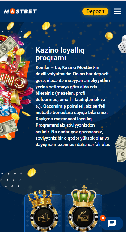 | Kazino üçün Loyallıq Proqramı | Aktivlik əsasında Mostbet Coins qazanın və onları bonuslara dəyişin. | Aktivlik əsasında. | Məhdudiyyətsiz |