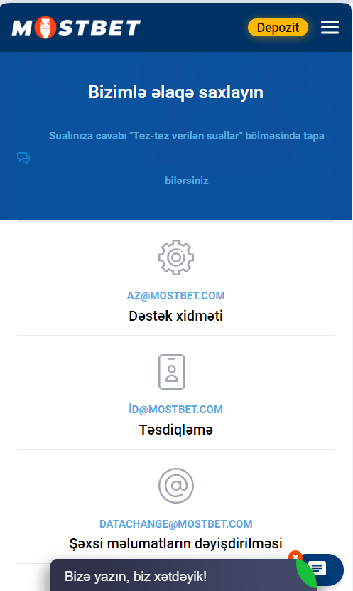 Mostbet, istifadəçilərinə 24/7 dəstək təmin etmək üçün bir neçə rahat əlaqə kanalını təklif edir. İstifadəçilər suallarını və ya problemlərini həll etmək üçün sayt və tətbiqdəki canlı çatdan, xüsusi formadan və digər üsullardan istifadə edə bilərlər. Dəstək Xidməti ilə əlaqə üsulları: